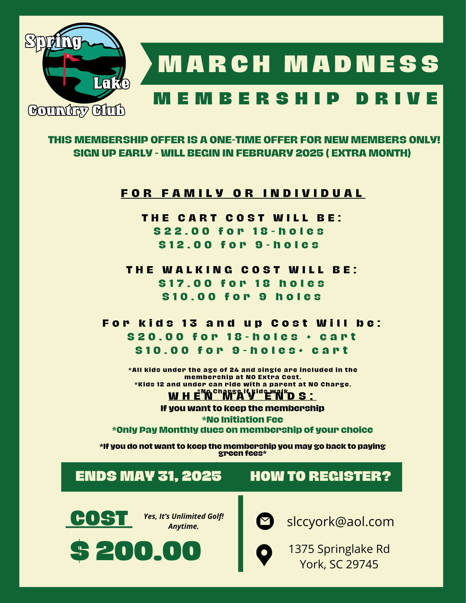 Located in the rolling hills of the Upstate of South Carolina. Just 30 minutes from the Metro City of Charlotte, NC lays Spring Lake Golf and Country Club, with its unique design and picturesque surroundings, make this course a must play in the Upstate.